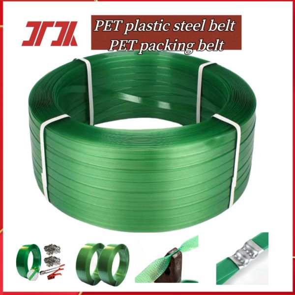 Green PET Packaging Strap Band Plastic Rolls Customized Size Images |